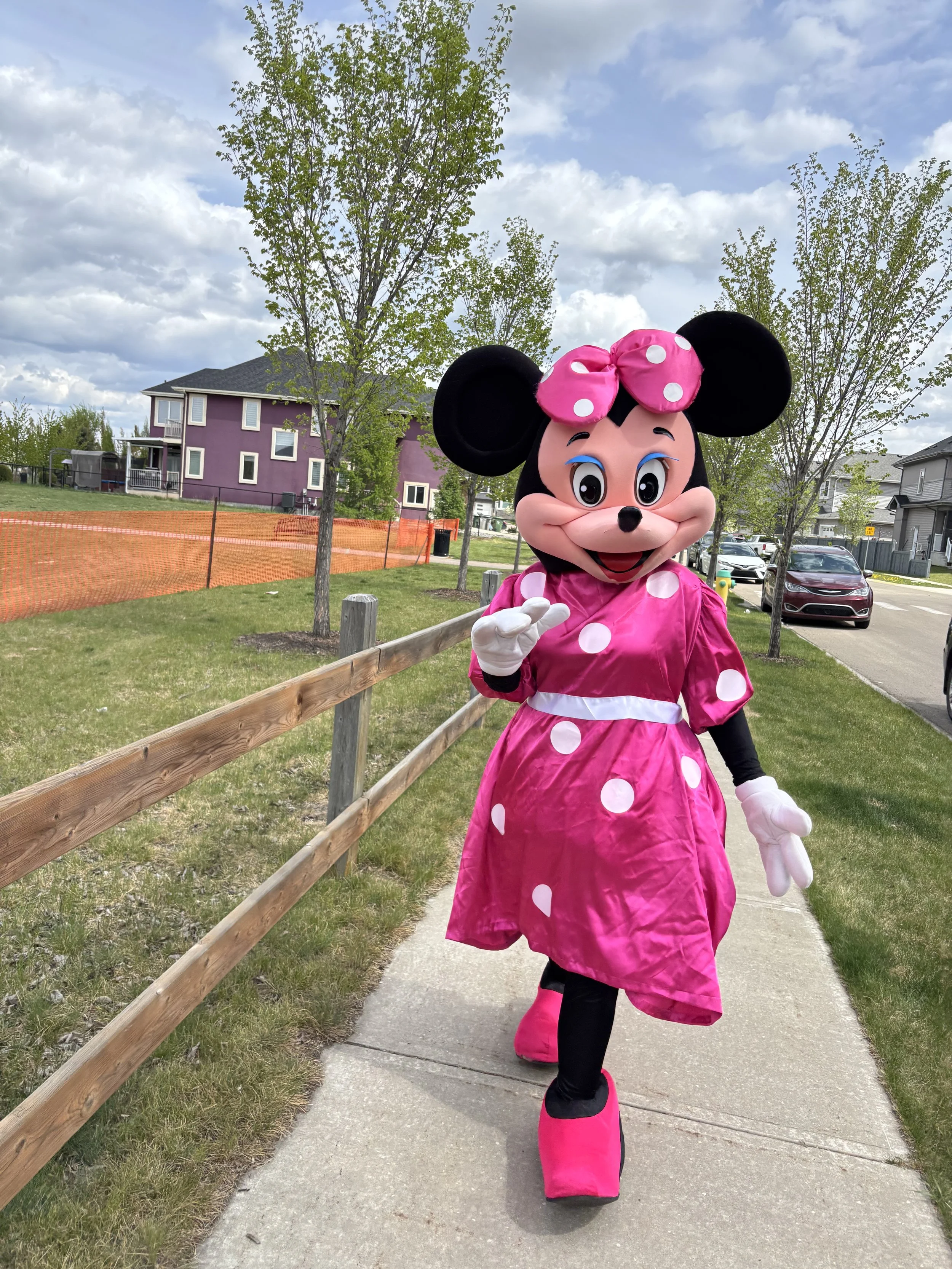 Temperature will not impact our ability to attend an event. However we do need to be mindful of our characters well being. In warmer weather anything over 22 degrees, some shade will need to be provided. The character will need to be able to move into the shade if they begin to get too warm. The costumes add up to 10 degrees to the ambient temperature, so we do not want them to overheat. We love outdoor events and will still have a wonderful time. A sun shade is a great help in these cases. For any event more than 1 hour, characters must have the option for a brief break every hour to hydrate. In this case a non visible area will need to be provided for the character to remove pieces of their costume . A small space such as a washroom is a perfectly acceptable location.